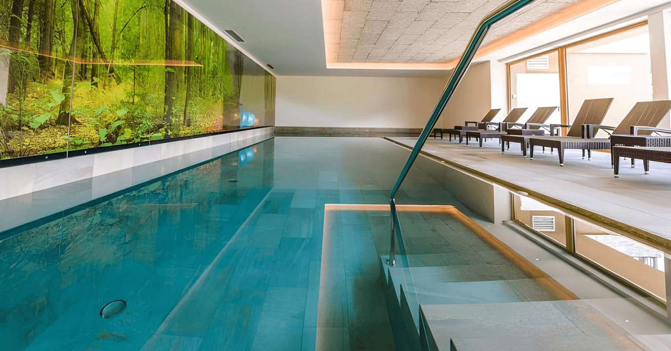 Es stehen Saunen, ein Innenpool, ein sommerlicher Außenpool sowie Panorama-Ruhezonen zur Verfügung.